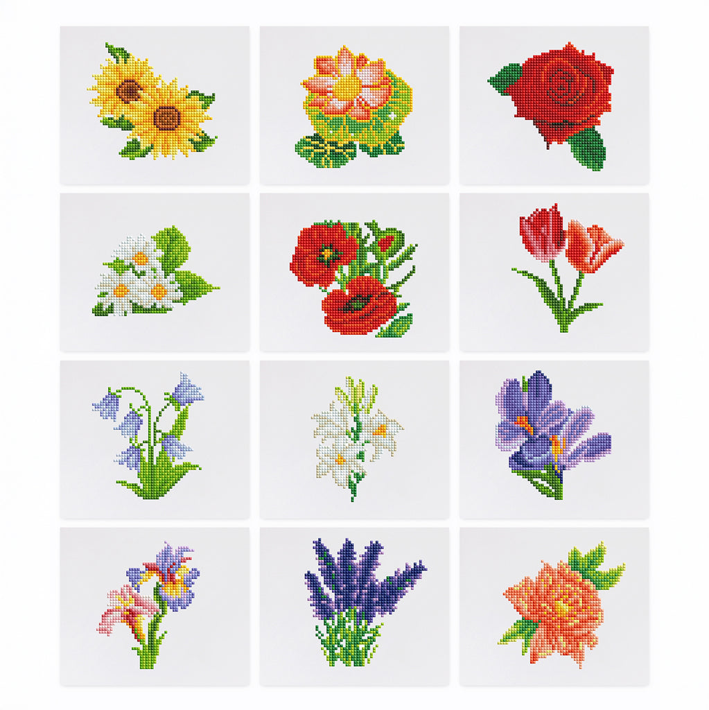 Flowers | 12 mini diamond paintings